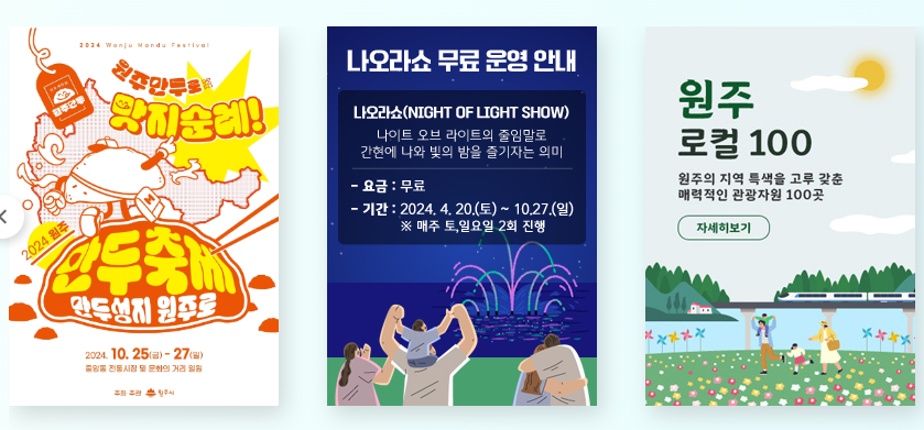 가을이 되면 선선한 날씨와 아름다운 단풍이 전국을 물들이며 다양한 지역 축제가 펼쳐집니다. 그중 강원도 원주는 먹거리와 볼거리가 풍성한 대표적인 가을 여행지로 떠오르고 있습니다. 이번 가이드에서는 원주의 만두 축제, 단풍 명소, 예술 공간 등을 중심으로 다채로운 가을 여행 코스를 소개해 드립니다. 뚜벅이 여행자에게 안성맞춤인 원주 시티투어 버스까지 활용하면 더욱 편리한 여행을 즐길 수 있습니다.