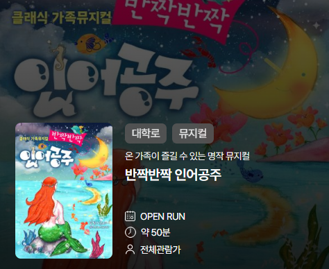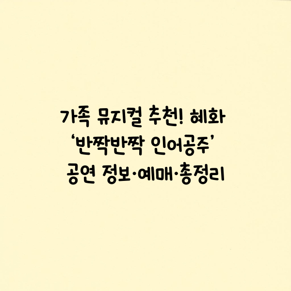 아이와 주말에 어디를 갈지 고민 중이신가요? 서울 대학로 혜화동에는 온 가족이 함께 보기 좋은 감동적인 어린이 뮤지컬 **‘반짝반짝 인어공주’**가 상설 공연 중입니다.