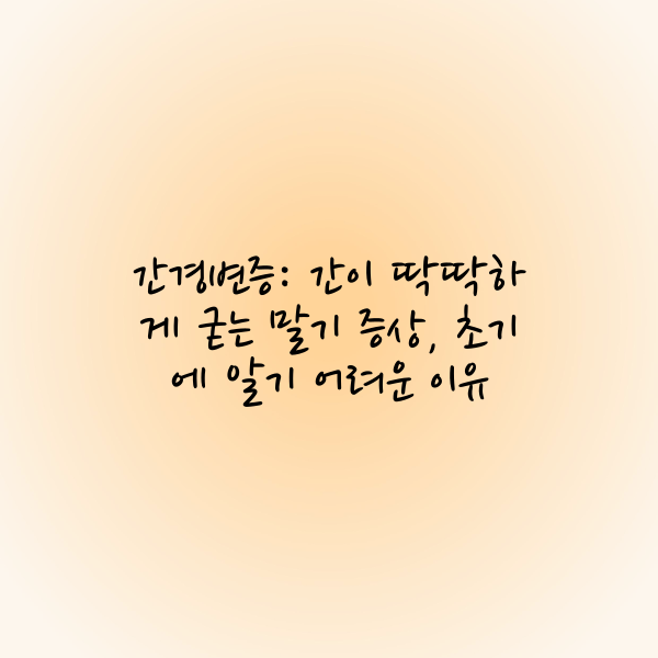 - 간경변증의 증상은 초기에는 무증상일 수 있지만, 질병이 진행됨에 따라 피로감, 황달, 복부 팽만감, 출혈 경향 등 다양한 증상이 나타날 수 있습니다.