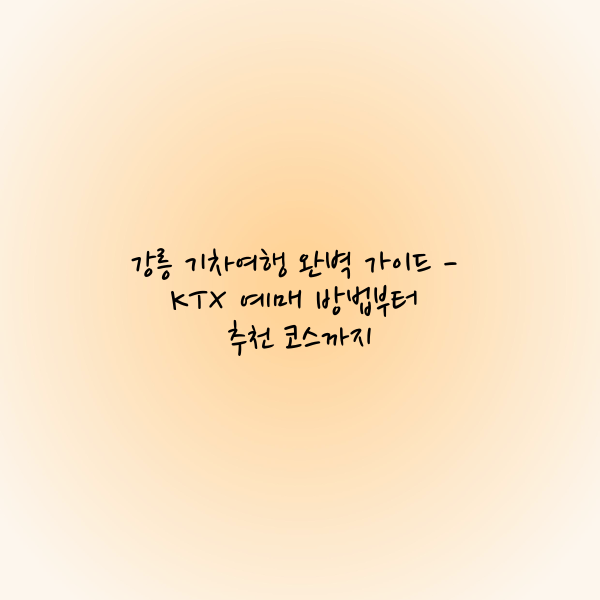 강릉은 한국의 아름다운 해변과 풍부한 문화를 자랑하는 매력적인 여행지로, 특히 KTX를 이용한 기차여행으로 빠르고 편리하게 이동할 수 있습니다. 이 글에서는 강릉 기차여행의 예매 방법과 요금, 추천 코스와 유의사항 등을 자세히 안내해 드렸습니다. 여행을 계획 중이시라면 이 정보를 바탕으로 미리 예약하고, 다양한 관광 명소를 알차게 즐기시길 바랍니다.