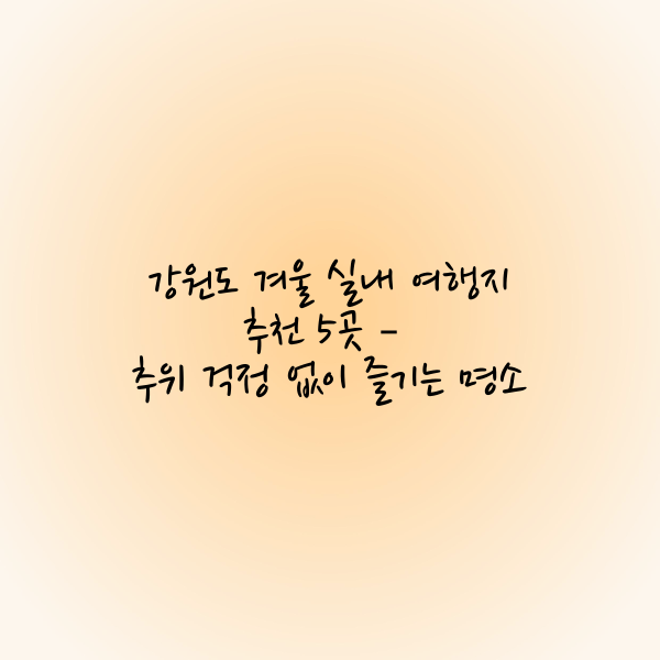 추운 겨울에도 강원도의 아름다움을 충분히 즐길 수 있는 실내 여행지를 소개해드렸습니다. 자연, 예술, 역사, 과학까지 다양한 테마로 구성된 이 여행지들은 날씨에 관계없이 방문하기 좋습니다.