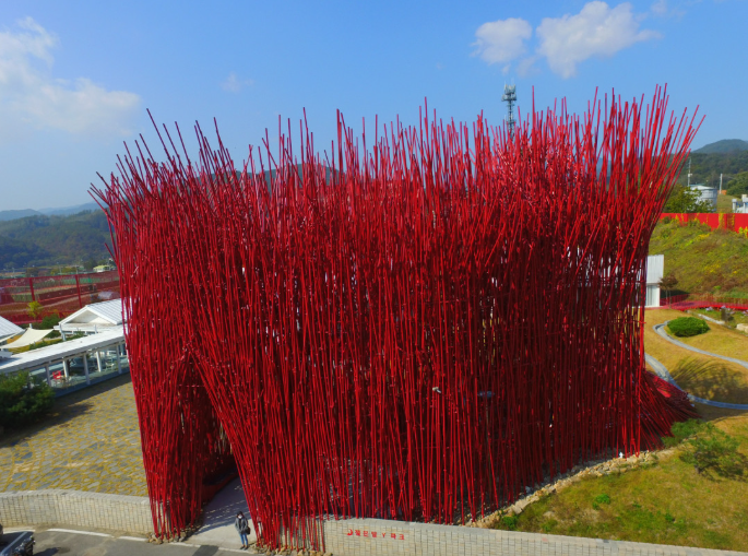 - 붉은 대나무 숲을 연상시키는 입구 작품