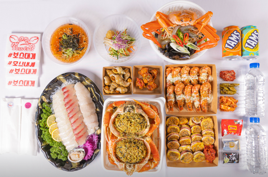 러시아 대게와 모둠회, 새우버터구이, 게딱지 볶음밥, 홍게 라면까지 한 번에 즐길 수 있는 보스 세트메뉴를 추천드립니다. 아이들도 먹기 좋은 게살과 새우 등 다양한 해산물이 있어 가족이 함께 즐기기 좋습니다.