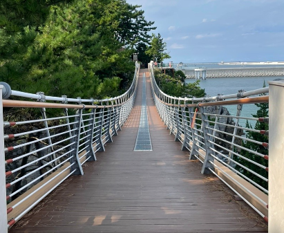 길이 56m의 출렁다리는 절벽 사이에 위치해 있어 바람이 불면 더 아찔한 스릴을 느낄 수 있습니다. 용굴, 사자바위, 거북바위 등 다양한 바위도 구경하며 동해바다의 멋진 풍경을 즐겨보세요.
