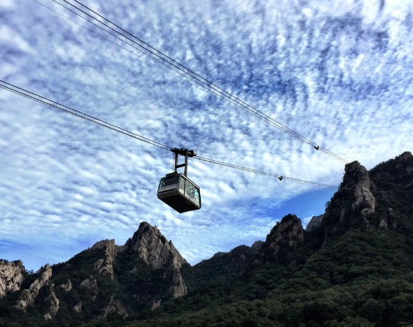 설악산 국립공원의 소공원에서 출발하는 설악 케이블카는 해발 700m 높이까지 왕복 운행합니다. 정상에 오르면 울산바위와 봉화대 등 설악산의 절경을 감상할 수 있습니다.