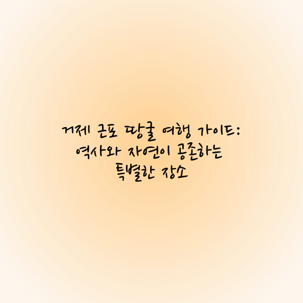 거제 근포 땅굴은 단순한 여행지가 아닌, 과거의 아픔과 현재의 아름다움을 동시에 경험할 수 있는 특별한 공간입니다. 이번 주말에는 거제로 떠나 근포 땅굴의 매력을 직접 느껴보세요!
