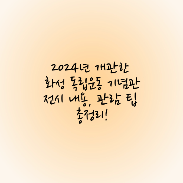 1. 화성 독립운동 기념관 위치 및 방문 정보