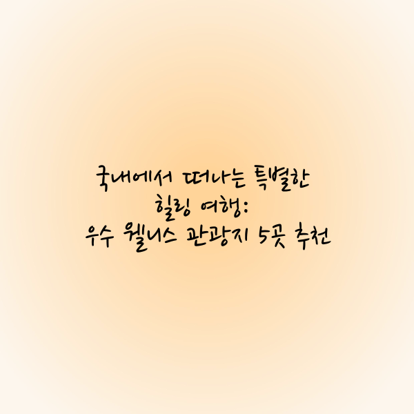 강원 원주, 전남 완도, 대구 군위, 부산 해운대, 전북 완주에 위치한 이 다섯 곳의 웰니스 관광지는 각기 다른 매력과 프로그램으로 방문객들에게 몸과 마음의 균형을 되찾는 특별한 경험을 선사합니다. 자연의 품에서 휴식을 취하거나, 전통과 현대가 어우러진 공간에서 새로운 활력을 얻고자 한다면 이곳들을 방문해 보세요. 일상에 지친 현대인들에게 진정한 힐링의 시간을 제공할 것입니다.