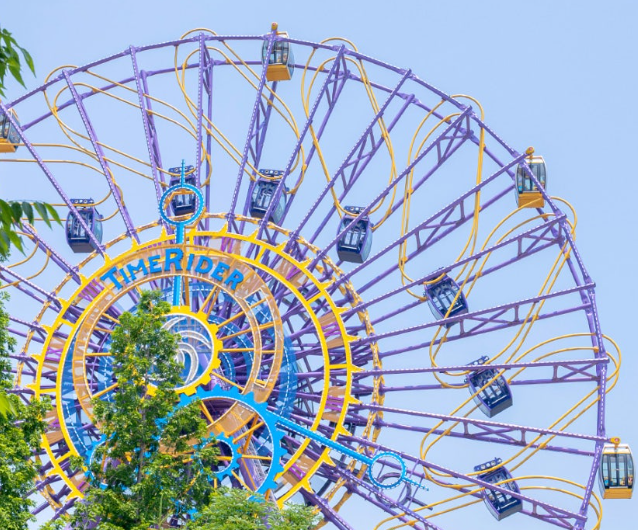 ‘관람차’라는 단어에 안주하지 마세요. 타임라이더는 레일을 따라 앞뒤로 이동하는 이동형 캐빈이 포함된 코스터휠입니다. 회전과 함께 위아래로 출렁이는 무중력 느낌은 롤러코스터 못지않은 스릴을 선사합니다.