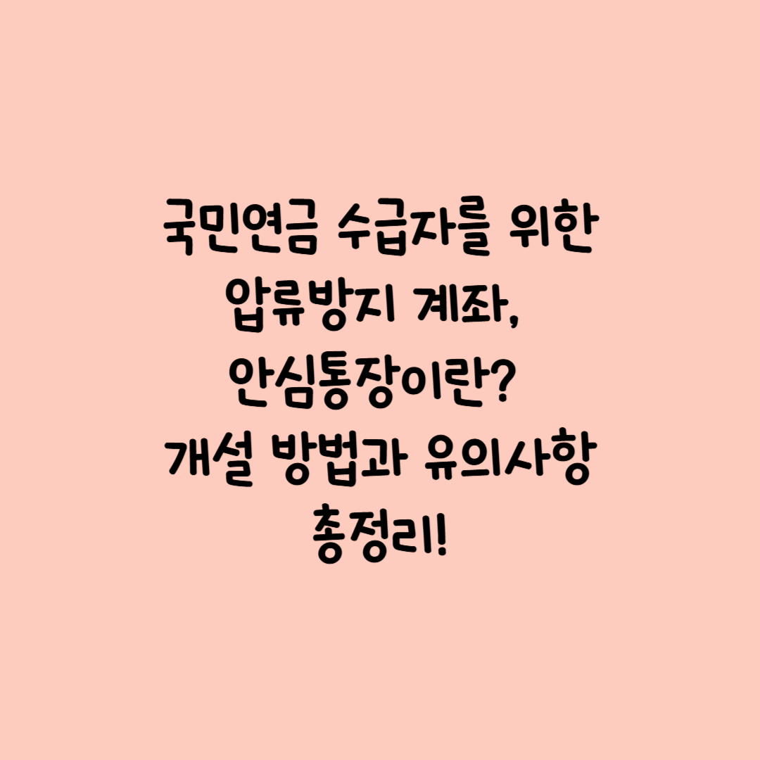 이번 글에서는 안심통장이란 무엇인지, 개설 대상과 절차, 개설 가능한 은행, 실제 이용 시 유의사항까지 자세히 알려드립니다. 국민연금을 수령하고 계신 분이라면 꼭 알아두셔야 할 필수 정보입니다!