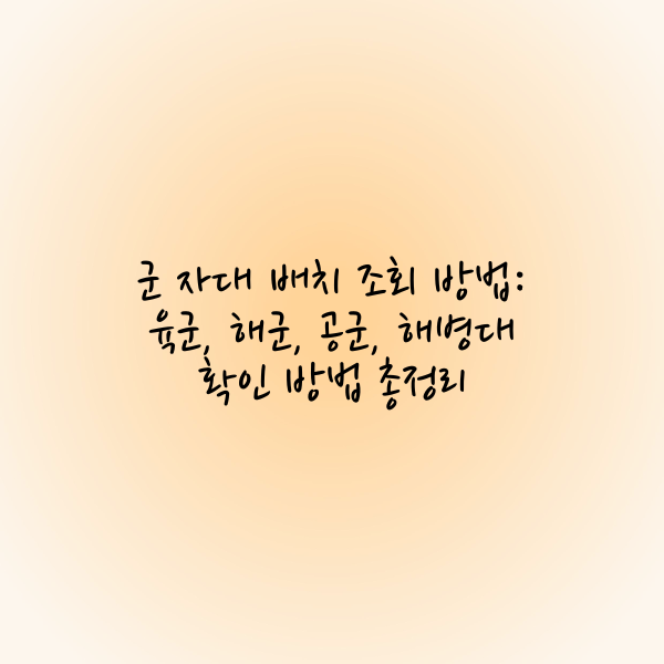 본 글에서는 육군, 해군, 공군, 해병대의 자대 배치 조회 방법을 상세히 정리하였으며, 군별 조회 가능 시기와 절차, 추가로 참고할 사항까지 안내합니다. 자대 배치 조회가 필요한 병사 및 가족들에게 실질적인 도움이 될 수 있도록 구체적인 방법을 소개해 드립니다.