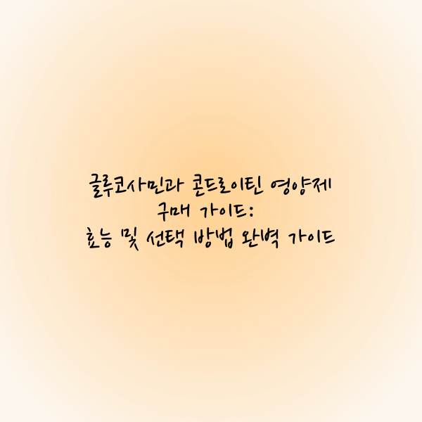 이 블로그 포스트에서는 글루코사민과 콘드로이틴 영양제의 효능을 자세히 살펴보고, 제품을 구매할 때 고려해야 할 중요한 사항들을 안내해 드리겠습니다. 올바른 선택을 통해 건강한 관절을 유지하고, 삶의 질을 향상시킬 수 있는 방법을 알아보세요.