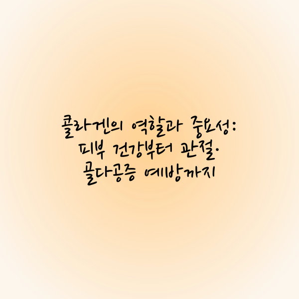 콜라겐은 단순히 피부 건강뿐만 아니라 관절, 연골, 근육, 뼈, 혈관 등 전신 건강에 필수적인 단백질입니다. 하지만 20대 중반 이후부터 자연 감소하기 때문에 이를 보충하지 않으면 노화 및 다양한 질병에 취약해질 수 있습니다.