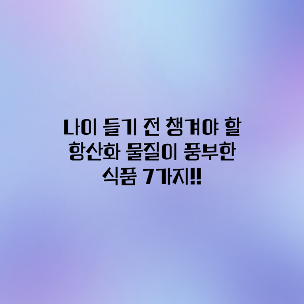나이 들기 전 챙겨야 할 항산화 물질이 풍부한 식품 7가지!!