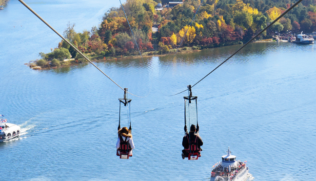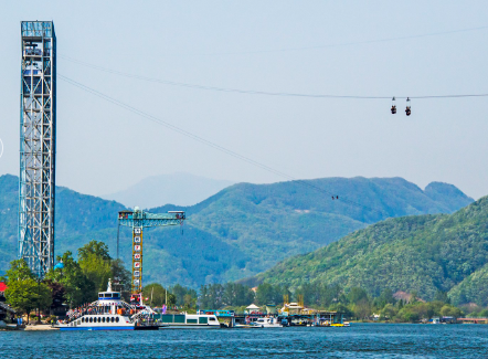 짚라인은 짜릿한 속도로 남이섬까지 이동할 수 있는 방법입니다. 가을 성수기에는 사전 예약이 필수로, 짚라인을 타며 단풍이 물든 남이섬을 공중에서 감상할 수 있습니다.