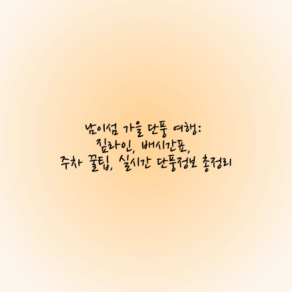 남이섬은 가을 단풍이 아름다운 대표 명소로, 짚라인, 배를 통해 들어갈 수 있는 특별한 여행지입니다. 남이섬은 가족, 연인, 친구와 함께 산책하기 좋으며, 애견 동반이 가능한 점도 매력적입니다. 올해 남이섬의 가을 단풍은 11월 중순까지 절정을 이룰 것으로 예상되며, 주차와 입장 준비는 사전 예약 및 주차 꿀팁을 활용해 더욱 편리하게 방문해보세요.