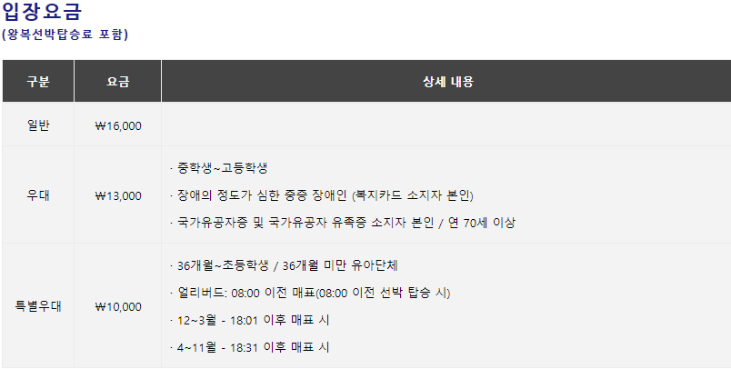 - 첫 배 시간: 07:30, 마지막 배 시간: 21:05