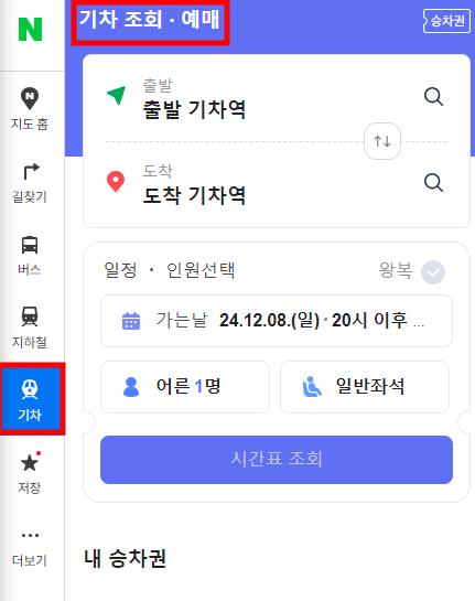 예매가 완료된 후, 발권된 승차권은 네이버 지도 앱에서 확인할 수 있습니다.