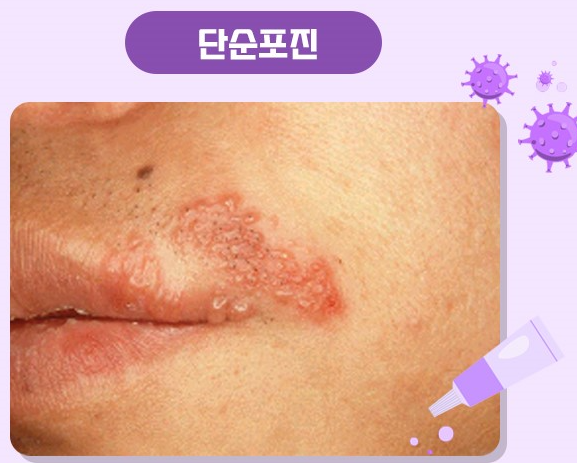 - HSV-1형: 입술, 코 주변에 주로 물집을 유발.