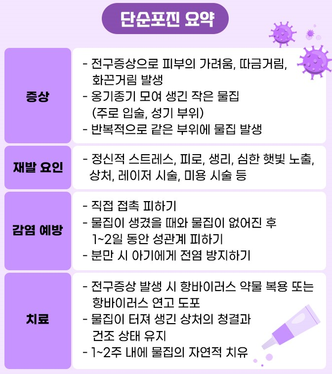 단순포진은 완치가 어려운 질환이지만, 예방과 관리를 통해 재발을 줄일 수 있습니다.