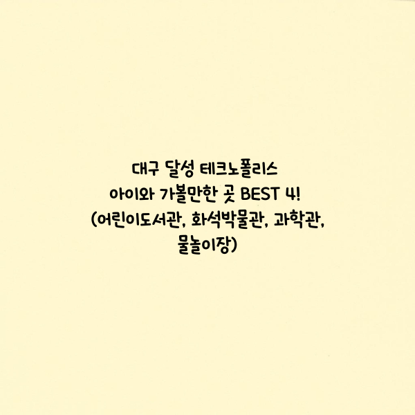 아이들과 주말 나들이 어디로 가야 할지 고민되시나요? 대구 달성군 테크노폴리스 신도시에는 아이들과 함께 유익하게 보내기 좋은 실내외 체험 시설이 한곳에 모여 있어 가성비, 가심비 모두 만족하는 나들이 명소로 인기입니다. 오늘은 무료입장이 가능한 달성어린이숲도서관부터, 흥미로운 체험과 전시로 가득한 달성화석박물관, 국립대구과학관, 여름철 아이들이 좋아하는 물놀이장까지, 대구 테크노폴리스에서 아이와 함께 꼭 가봐야 할 장소 4곳을 소개합니다.
