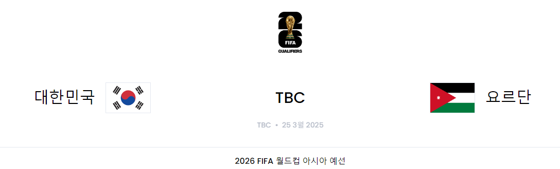- 2025년 3월 25일: 대한민국 vs 요르단 (홈)