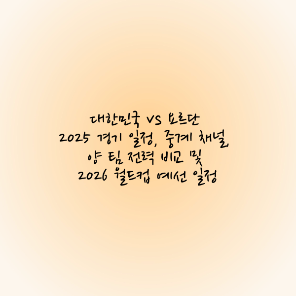 2026 북중미 월드컵 예선이 한창 진행되는 가운데, 대한민국 축구 팬들의 관심은 요르단과의 8차전 경기에 집중되고 있습니다. 이번 예선은 아시아의 강팀들이 본선 진출을 위해 치열한 경쟁을 펼치는 무대인 만큼, 대한민국 역시 한 경기 한 경기 최상의 전력으로 임하고 있습니다. 특히 이번 요르단과의 경기는 대한민국의 본선 진출에 중요한 전환점이 될 전망입니다. 이번 포스트에서는 대한민국과 요르단의 경기 일정, 중계 정보, 양 팀 전력 비교, 그리고 앞으로의 대한민국 경기 일정을 자세히 소개해 드리겠습니다.