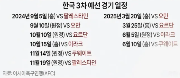 4. 2026 북중미 월드컵 3차 예선 대한민국 경기 일정