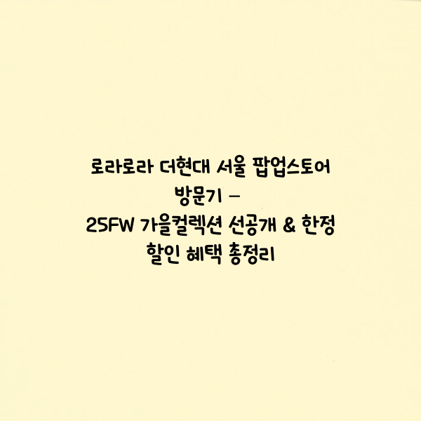 더현대 서울 로라로라 팝업스토어는 단순히 옷을 파는 곳이 아닙니다. 브랜드의 감성과 라이프스타일을 온전히 경험할 수 있는 ‘작은 별장’ 같은 공간이자, 희귀템과 한정 패키지를 득템할 수 있는 절호의 기회입니다.