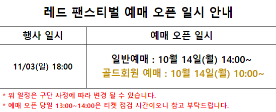 티켓 예매에 성공해 레드 팬스티벌의 열기를 직접 느껴보세요!