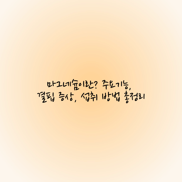 이번 글에서는 마그네슘의 주요 기능, 결핍 증상, 섭취 방법과 함께 마그네슘이 풍부한 음식을 소개하여 건강 관리에 도움이 되는 정보를 제공하겠습니다.