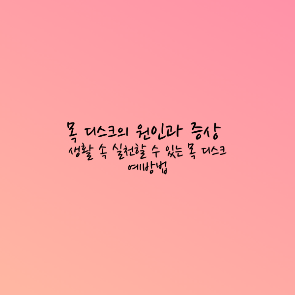목 디스크는 현대인에게 흔한 질병 중 하나이며, 적절한 관리와 예방이 필요합니다. 오늘 제시한 원인과 증상, 그리고 자세 교정을 통한 개선 방법을 잘 숙지하여 목 건강을 지키시길 바랍니다. 건강한 목은 여러분의 일상 생활과 직장 생활에서 긍정적인 효과를 가져오므로 이 글이 실질적인 도움이 되었기를 바랍니다.