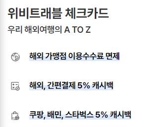 우리은행 위비트래블 체크카드 신청하기