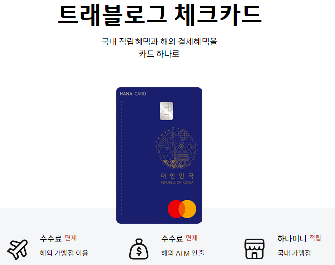 - 또한, 하나은행의 트래블로그 카드는 해외 결제 수수료와 일부 해외 ATM에서의 현금 인출 수수료도 부과되지 않아 현지에서도 편리하게 사용할 수 있는 장점이 있습니다.