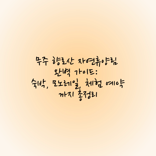 전라북도 무주군에 위치한 무주 향로산 자연휴양림은 자연 속에서 힐링을 원하는 이들에게 최적의 여행지입니다. 숙박시설, 야영장, 세미나실 등 다양한 시설과 함께 모노레일, 공방체험, 와인테라피 등의 특별한 경험을 제공합니다. 이번 글에서는 무주 향로산 자연휴양림의 모든 정보를 구체적으로 정리해보겠습니다. 가족여행, 친구와의 나들이, 혹은 힐링을 위한 혼자만의 여행을 계획 중이라면 꼭 참고해보세요.