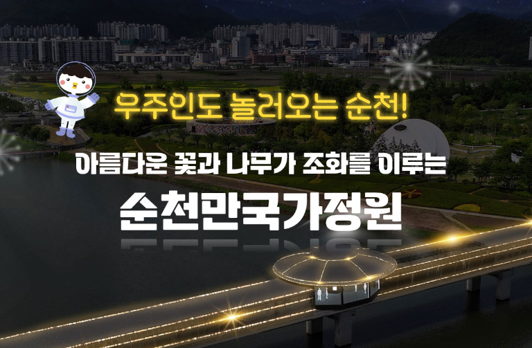 - 순천의 아름다운 순천만국가정원이 새로운 모습으로 여러분을 맞이합니다. 2024년 4월 재개장한 이후, 더욱 화려하고 아름다운 정원으로 거듭나게 되었습니다. 밤에 더욱 빛나는 이 정원은 여러분을 특별한 여행으로 안내할 것입니다.