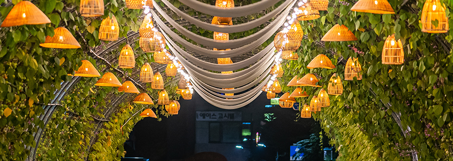- 식물원 외부에 설치된 조명은 마치 영화 아바타 속에서 나온 듯한 분위기를 연출합니다. 민들레 홀씨 모양의 조명과 무지갯빛 조명은 숲 속을 걷는 듯한 신비로운 경험을 선사합니다.