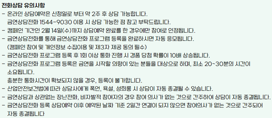 금연 상담 참여 캠페인 경품안내