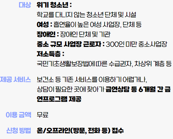 4) 찾아가는 금연 지원 서비스 - 우리가 있는 곳으로 찾아와 친절한 전문상담을 제공