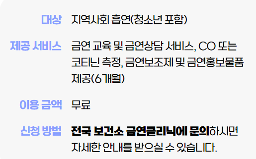 1) 보건소 금연클리닉 - 금연 결심만 있다면, 내 주변의 보건소 어디에서든 받을 수 있는 최고의 전문 상담
