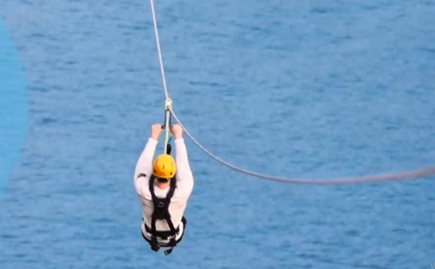- 태종대 오션플라잉 테마파크에서 가장 인기 있는 액티비티는 건물 꼭대기에 설치된 짚라인입니다. 길이 653m로 부산에서 가장 긴 짚라인으로, 최대 4명까지 동시에 이용할 수 있습니다. 숙련된 가이드가 안전을 책임지며 함께 여행을 즐길 수 있습니다.