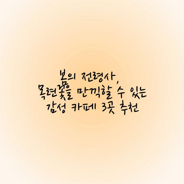 봄이 오면 가장 먼저 피어나는 꽃, 목련. 우아한 자태와 향긋한 향기로 봄이 왔음을 알리는 목련꽃은 많은 이들에게 사랑받는 꽃 중 하나입니다. 만개한 목련을 바라보며 따뜻한 커피 한 잔을 즐길 수 있다면 더욱 특별한 시간이 되겠죠? 이번 글에서는 대중교통으로도 쉽게 방문할 수 있는 목련꽃 카페 네 곳을 소개해 드립니다. 서울과 수원에 위치한 감성 가득한 카페들에서 목련이 선사하는 봄의 아름다움을 만끽해보세요.
