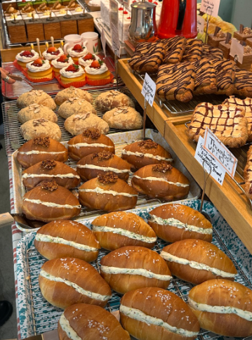 - 입구에 들어서면 눈길을 사로잡는 디저트 진열대와 카운터가 있으며, 내부는 보도블록을 깔아 야외 테라스 느낌을 살린 것이 특징입니다. 폴딩 도어를 활짝 열어 목련을 가까이에서 감상할 수 있으며, 2층 테라스 자리는 가장 인기 있는 좌석입니다.