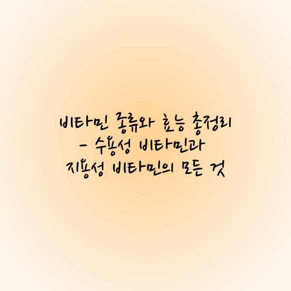 이번 글에서는 수용성 비타민과 지용성 비타민의 종류와 각 비타민이 우리 몸에 미치는 효과를 자세히 살펴보고, 비타민이 풍부한 음식까지 소개해 드리겠습니다. 건강을 위해 어떤 비타민을 섭취해야 할지 고민하고 있다면 이 글을 끝까지 읽어보세요!