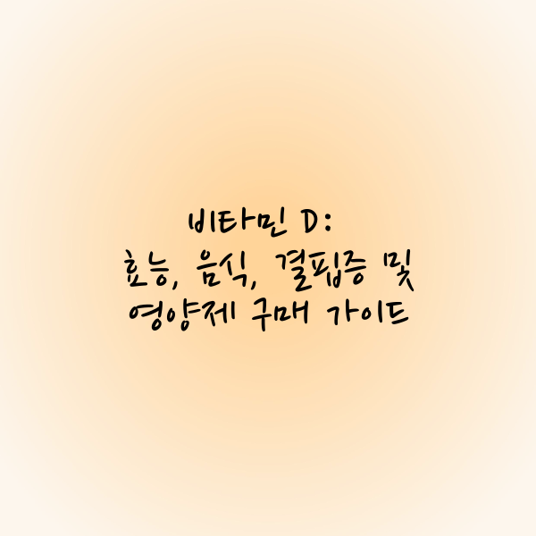이 블로그 글에서는 비타민 D의 효능, 권장 섭취량, 결핍증 증상, 비타민 D를 포함한 음식들, 그리고 비타민 D 영양제 구매 시 고려해야 할 사항들을 자세히 살펴보겠습니다. 건강한 생활을 위해 반드시 알아야 할 모든 정보를 제공합니다.