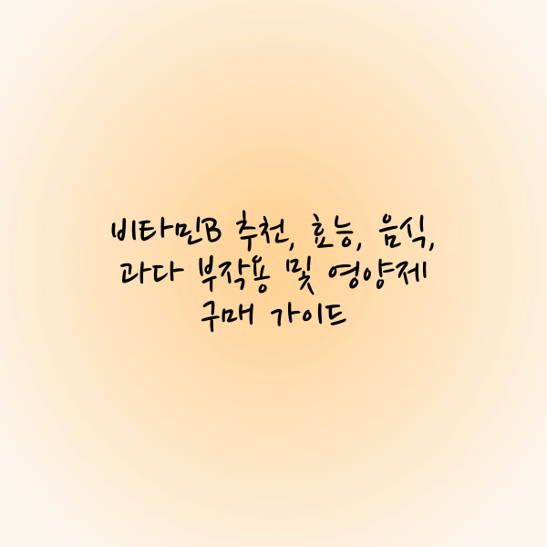비타민 B는 우리 몸의 에너지 생산, 신경 기능 유지, 세포 대사에 중요한 역할을 합니다. 다양한 비타민 B군은 각각의 역할이 있어 균형 있게 섭취하는 것이 중요합니다. 이 글에서는 비타민 B의 효능, 함유된 음식, 과다 섭취 시 부작용, 그리고 추천 영양제 7가지를 소개하여 여러분의 건강한 생활을 돕고자 합니다.