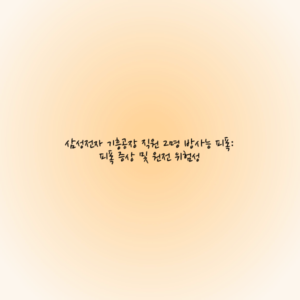 2024년 5월 30일, 삼성전자 기흥공장에서 일하던 직원 2명이 방사능에 피폭되는 사고가 발생했습니다. 이번 사고는 산업 현장에서의 방사능 노출에 대한 심각성을 다시 한번 일깨워주고 있습니다. 방사능 피폭은 인체에 치명적인 영향을 미칠 수 있으며, 피폭 정도에 따라 다양한 증상이 나타납니다. 이번 블로그 글에서는 방사능 피폭의 증상과 원자력 발전소의 위험성에 대해 자세히 알아보겠습니다.
