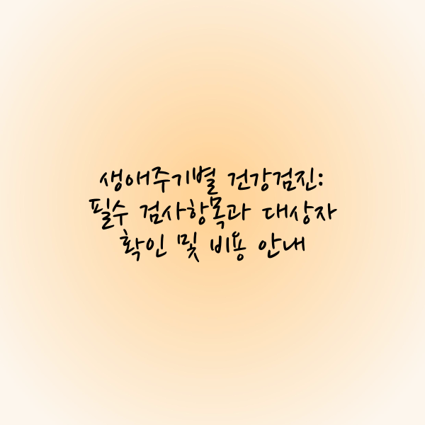 정기적인 건강검진을 통해 자신의 건강 상태를 점검하고, 질병을 조기에 발견하여 예방하는 것이 매우 중요합니다. 생애주기별로 적절한 검진을 받는 것은 건강한 삶을 유지하는 데 큰 도움이 됩니다.