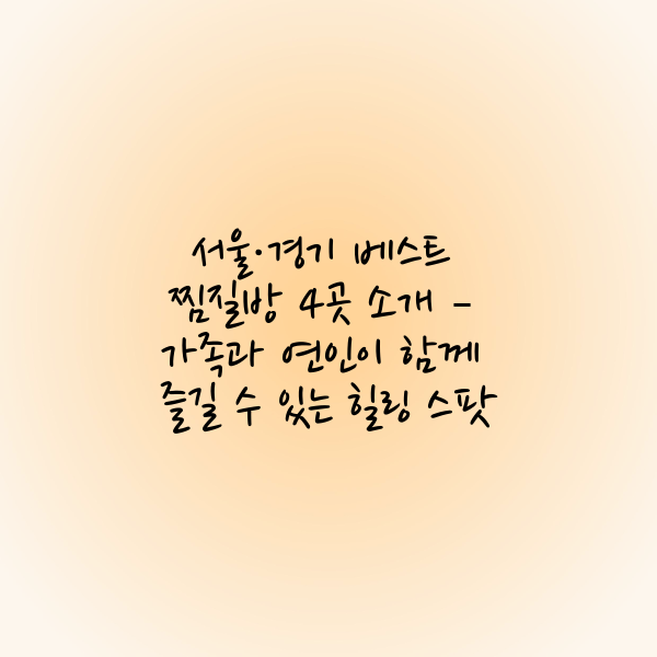 가을과 겨울처럼 쌀쌀한 날씨가 찾아오면 많은 사람들이 따뜻한 찜질방을 찾습니다. 찜질방은 몸을 데우며 피로를 푸는 데 효과적일 뿐 아니라 가족이나 연인과 함께 시간을 보내기에도 안성맞춤인 장소입니다. 오늘은 서울과 경기도에 위치한 베스트 찜질방 5곳을 소개합니다. 각각의 찜질방은 독특한 매력과 즐길 거리를 제공해 방문객들에게 특별한 경험을 선사합니다.