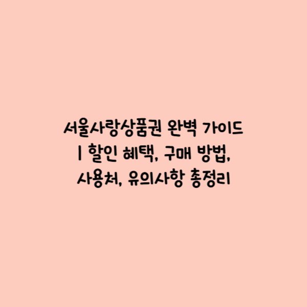 서울사랑상품권 완벽 가이드|할인 혜택, 구매 방법, 사용처, 유의사항 총정리
